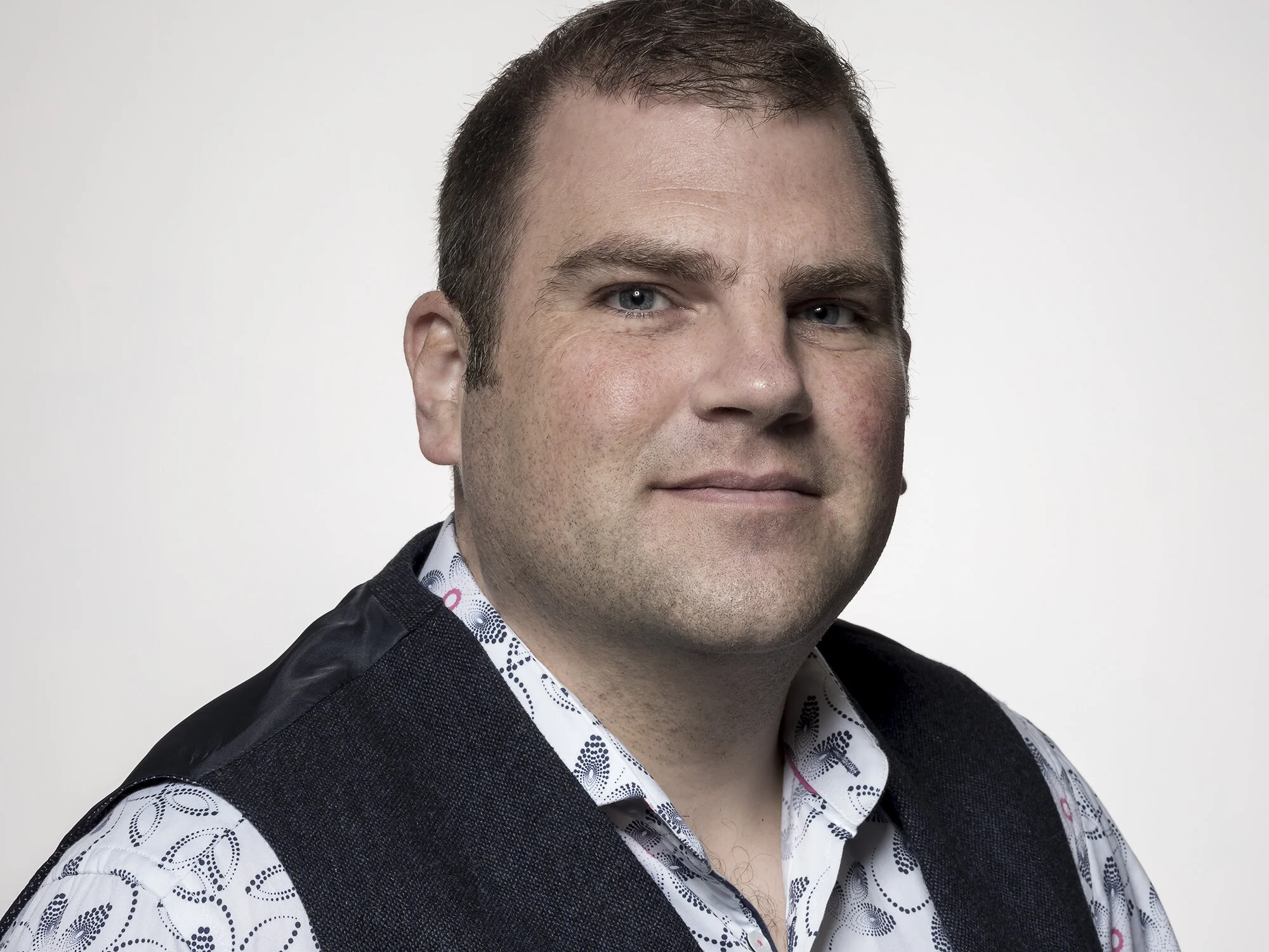 The criteria for this shoot was to present a professional but friendly persona (which is Daniel all over) so it was decided to keep the background simple (utilising black, white and grey backgrounds) and keep the focus on Daniel’s face.